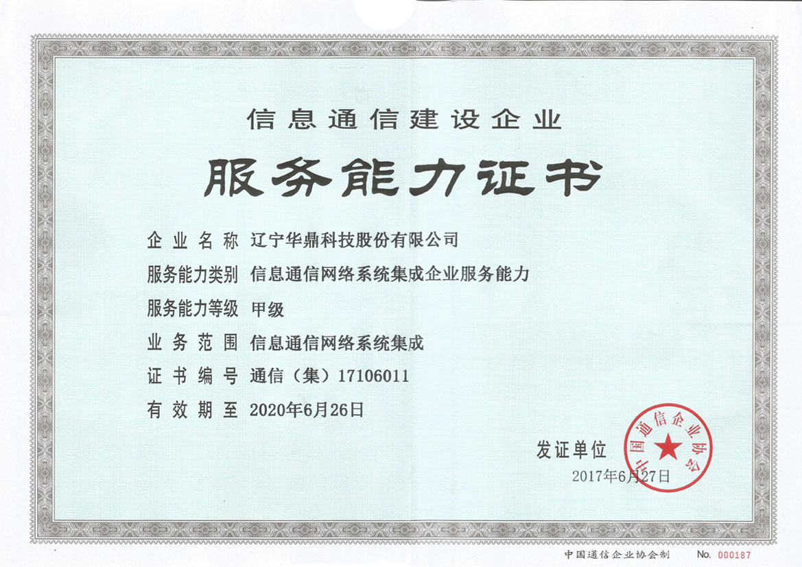 信息通信網(wǎng)絡(luò)系統(tǒng)集成企業(yè)服務(wù)能力甲級(jí)資質(zhì)審批通過(guò),下發(fā)證書(shū)!