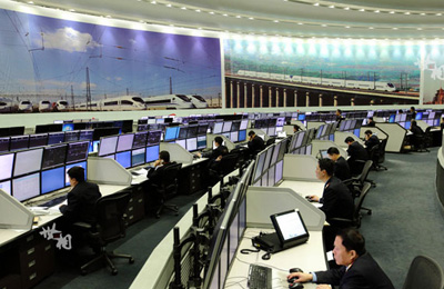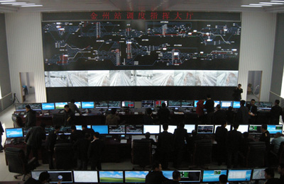 “沈陽鐵路局金州站指揮監(jiān)控中心DLP拼接大屏幕顯示系統(tǒng)”采用1400*1050分辨率,67英寸,使用了4*9共36個箱體,能夠充分滿足金州站指揮監(jiān)控中心的需要,是DLP拼接顯示系統(tǒng)在指揮監(jiān)控應用的一個經典工程案例。