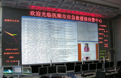 撫順市公安局110指揮監(jiān)控中心DLP拼接大屏幕顯示系統(tǒng)”采用1024*768分辨率,67英寸,使用了4*6共24個(gè)箱體,能夠充分滿(mǎn)足撫順市公安局110指揮監(jiān)控中心的需要,是DLP拼接顯示系統(tǒng)在110指揮監(jiān)控中心應(yīng)用的一個(gè)經(jīng)典工程案例。項(xiàng)目實(shí)施后圖像清晰,畫(huà)質(zhì)穩(wěn)定,獲得用戶(hù)好評(píng)。